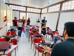 A atividade orientada por Taylyne e Aníbal Costa, Coordenador do CHP, estimula a identificação do alfabeto e também o raciocínio rápido por meio de um jogo virtual que simula a queda de cometas.
