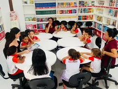 Meninos e meninas matriculados nos Centros Municipais de Educação Infantil (CMEIs), conceito atual de creche-escola, aprendem e se divertem no espaço inaugurado em junho deste ano, investimento que também revitalizou a biblioteca fechada há anos.
