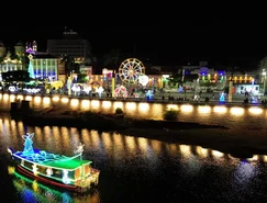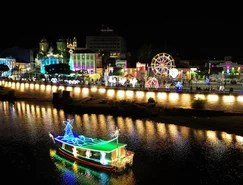 A atração inserida no Penedo Luz 2024 impressiona pela qualidade, assim como a produção para chegada do Papai Noel em sua embarcação iluminada.