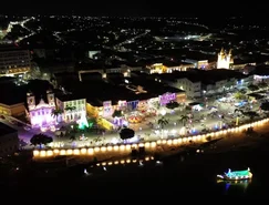 Com a presença do bom velhinho e demais personagens da fantástica fábrica de brinquedos e de alegria, o Prefeito Ronaldo Lopes acionou a iluminação natalina da Praça 12 de Abril e orla da cidade.