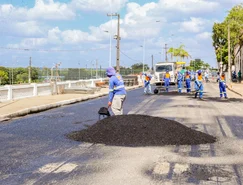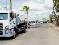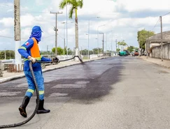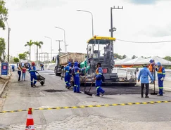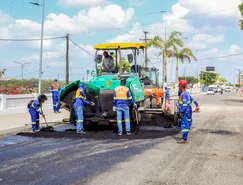 Trabalhadores e equipamentos estão recapeando o asfalto da Avenida Divaldo Suruagy, popularmente chamada de Beira Rio, do ponto entre a sede antiga da Brasnorte até as imediações do acesso à estrada Euclides Idalino e ao bairro Nossa Senhora de Fátima.