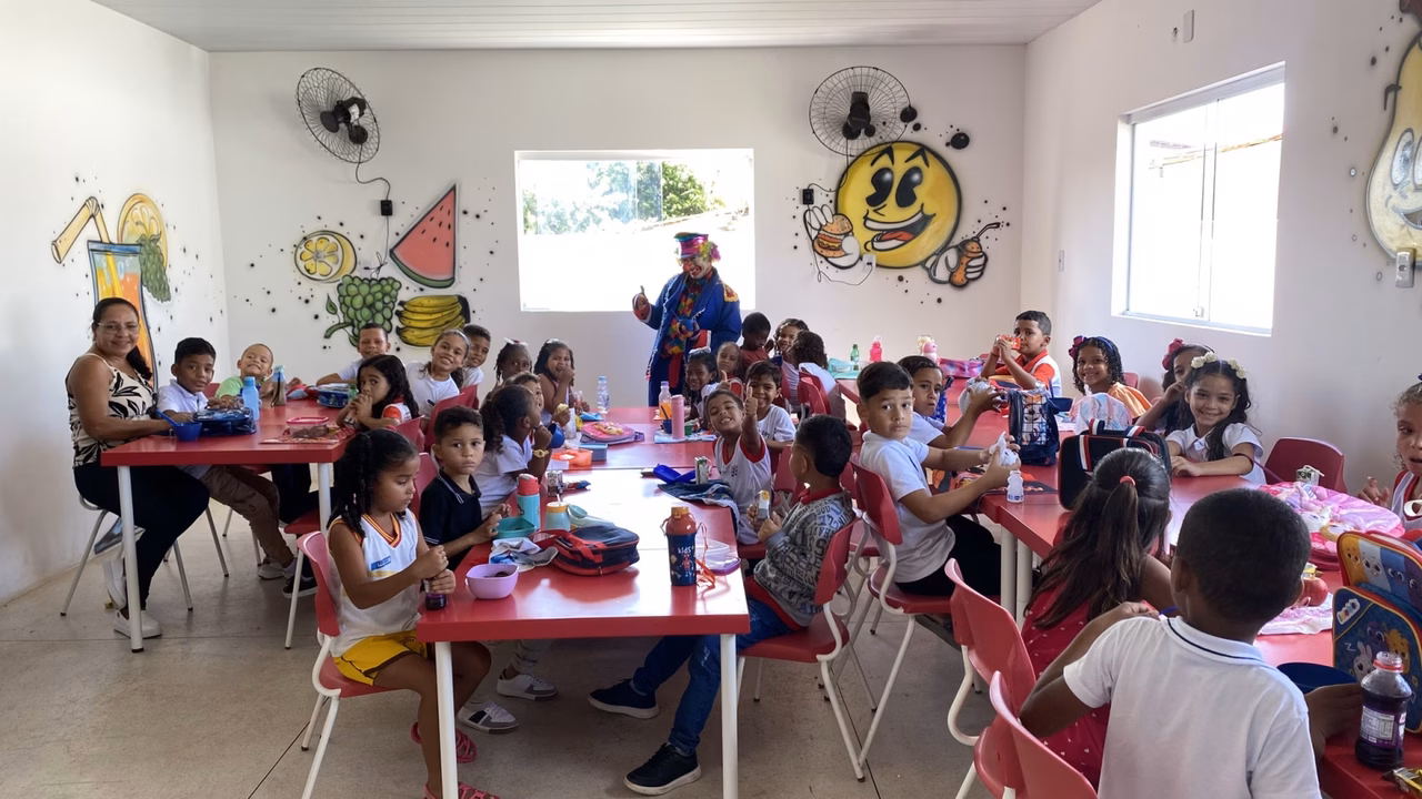 A administração que conquistou recentemente o Selo Ouro no Programa Nacional de Compromisso com a Alfabetização preparou surpresas para a garotada, como a recepção do Palhaço Dyddo ao lado de professores, coordenadores e funcionários da Escola Municipal Maria da Glória Pimenteira, situada no povoado Ponta Mofina.