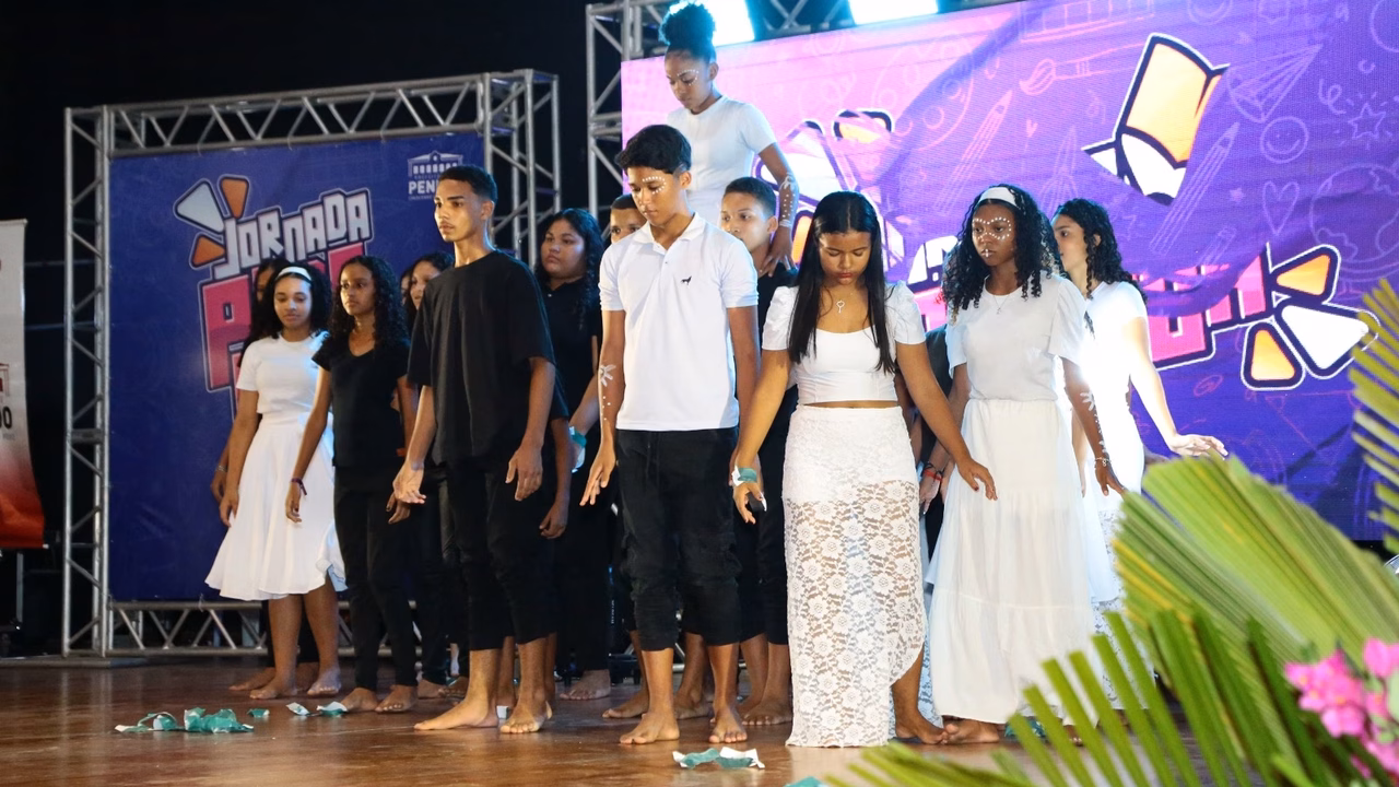 A programação da abertura da Jornada Pedagógica 2025 teve apresentação de estudantes da Escola Municipal Cônego Teotônio Ribeiro, localizada no povoado Murici.