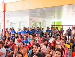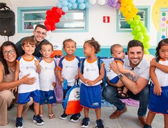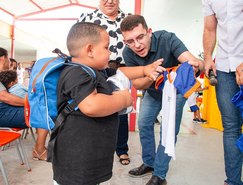 A solenidade reuniu alunos, pais e mães das crianças beneficiadas e era nítido o olhar de felicidade da garotada beneficiada com a entrega dos kits de fardamento escolar.