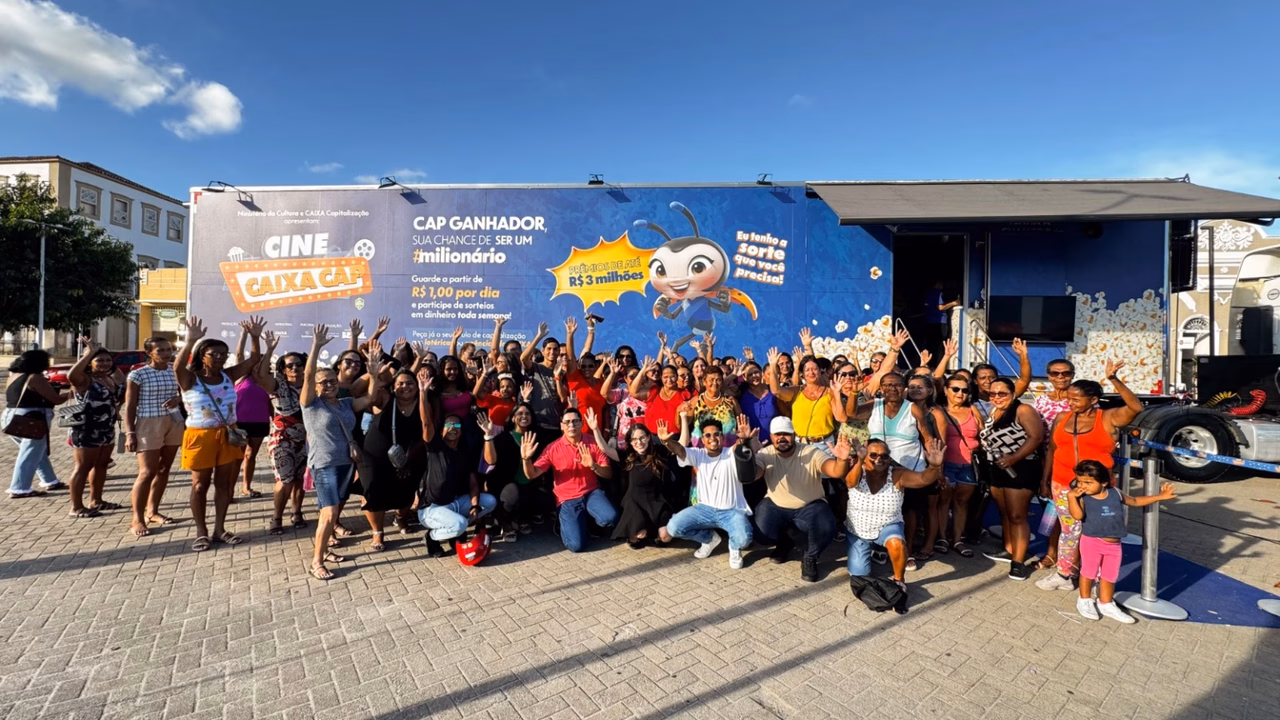A magia do cinema também encantou os grupos atendidos pelos Centros de Referência em Assistência Social (CRAS) do Barro Vermelho e do Oiteiro no programa da instituição federal que iniciou a edição 2025 do Cine Caixa CAP às margens do Rio São Francisco.