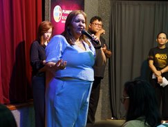 Abrindo a programação de atividades, a artista Gloridayane Teles apresentou o monólogo “Le monde bleu”, que retrata a vida de seu filho Eirapuã, uma criança com autismo e o seu modo de viver, de sentir e de perceber o mundo ao seu redor.