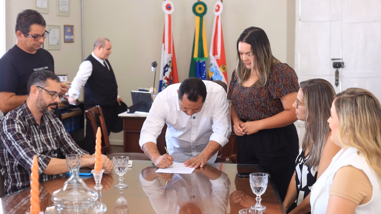 “Nós temos a certeza que vocês vão contribuir muito com o serviço público da nossa cidade. Que Deus abençoe vocês, eu sei que é um sonho realizado porque vocês aguardavam esse momento de receber a posse”, disse o gestor interino e ex-vereador.