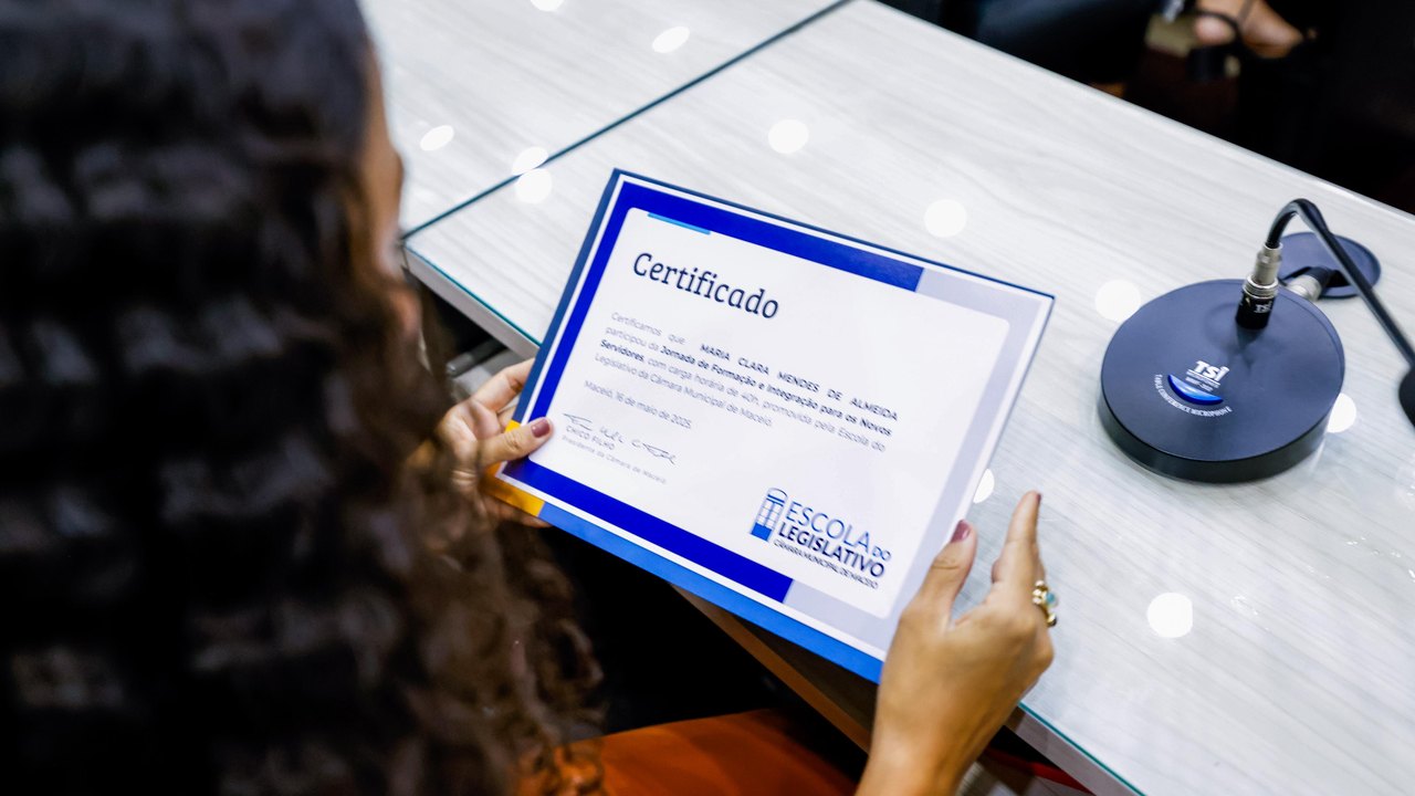 Os novos servidores da Câmara de Maceió receberam, na manhã desta sexta-feira (16), o certificado de formação após a conclusão da Jornada de Integração promovida pela Escola do Legislativo. O presidente da Câmara, Chico Filho, conduziu a sessão de entrega ao lado da vice-presidente, vereadora Silvania Barbosa, e do vereador David Empregos.
