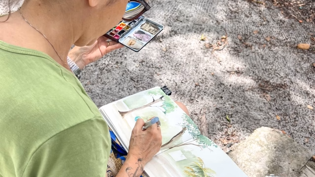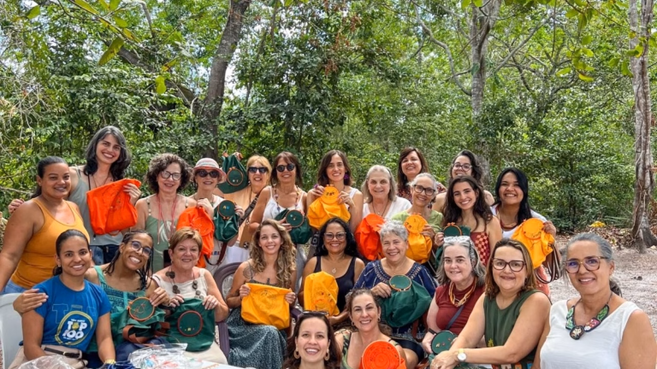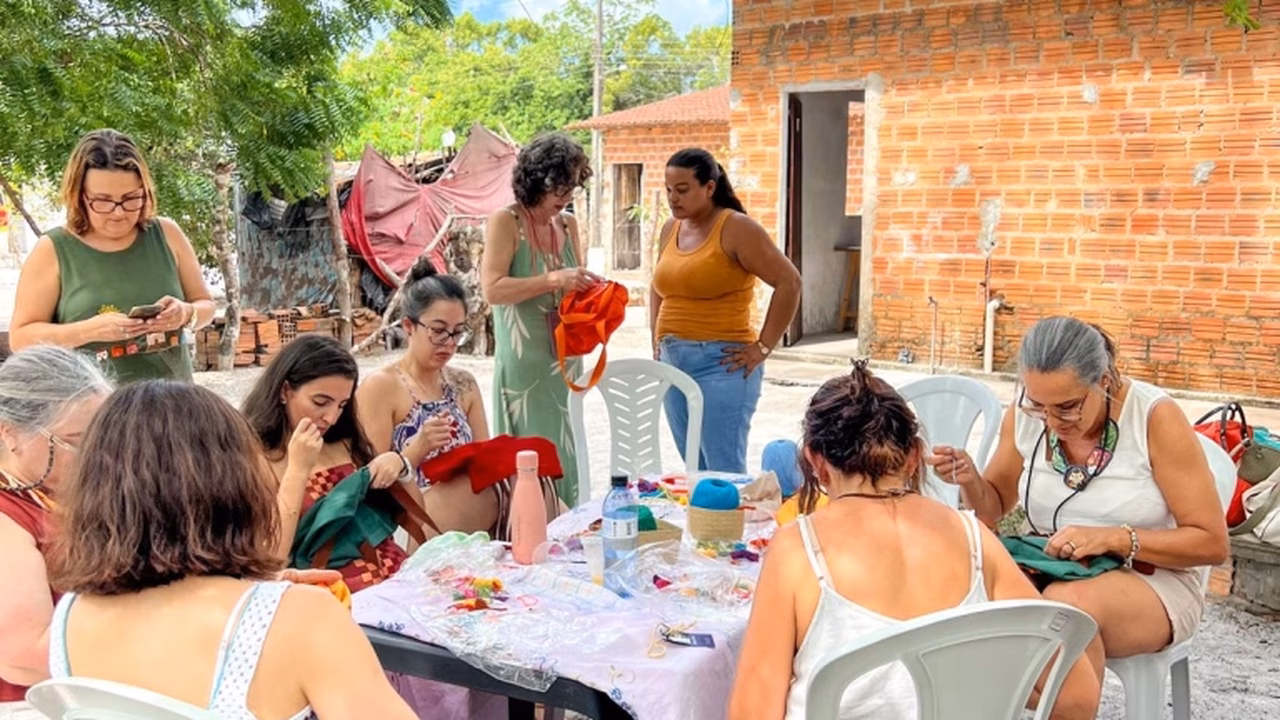 Sob a sombra de um cajueiro e em meio a uma paisagem deslumbrante, as artesãs participaram da oficina de bordado livre “Retratando o Cotidiano da Zona Rural”, ministrada pela Mestra Ana Cristina dos Santos.