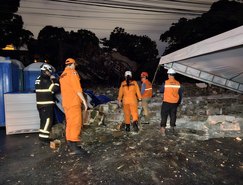 Ação integrada das polícias investiga causas do desabamento do galpão em Jaraguá