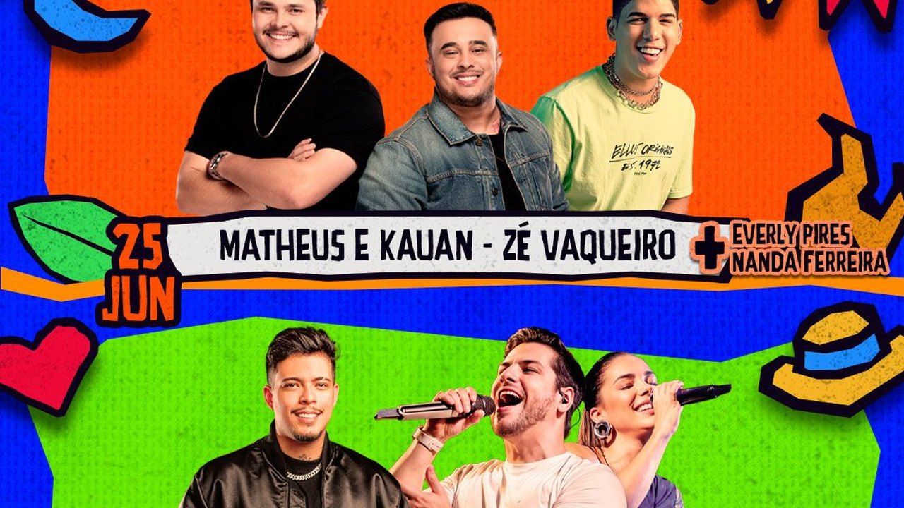 Pela primeira vez na programação da cidade, Matheus e Kauan abrem a primeira noite de show na quarta-feira (25), além do pernambucano Zé Vaqueiro. Everly Pires e Nanda Ferreira também subirão ao palco trazendo sucessos para o público.