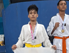 O estudante Mário Ferreira (Escola Santa Luzia) também subiu ao pódio no JEAL 2025, conquistando a medalha de prata da categoria infantil no taekwondo, esporte que ele pratica na academia Extremos taekwondo. Segundo colocado na categoria infantil.
