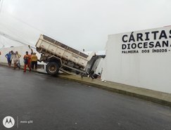 Caminhão desgovernado derruba muro da Cáritas Diocesana em Palmeira dos Índios