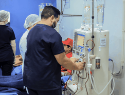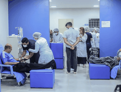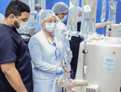 “Esta é a nossa primeira sessão e está tudo tranquilo. Todos estão ansiosos para saber como seria e estamos tendo uma diálise sem nenhuma intercorrência. São pacientes que já eram dialíticos prévios e foram transferidos para cá por questão de aproximação, para trazer mais conforto e qualidade de vida para eles. É uma terapia que precisa ser feita três vezes por semana, com duração de 4 horas. Aqui na unidade estamos preparados para todos os tipos de emergência, da mais simples até a mais complexa”, informa a nefrologista Dra. Julia Torres, responsável pelo primeiro dia do atendimento.