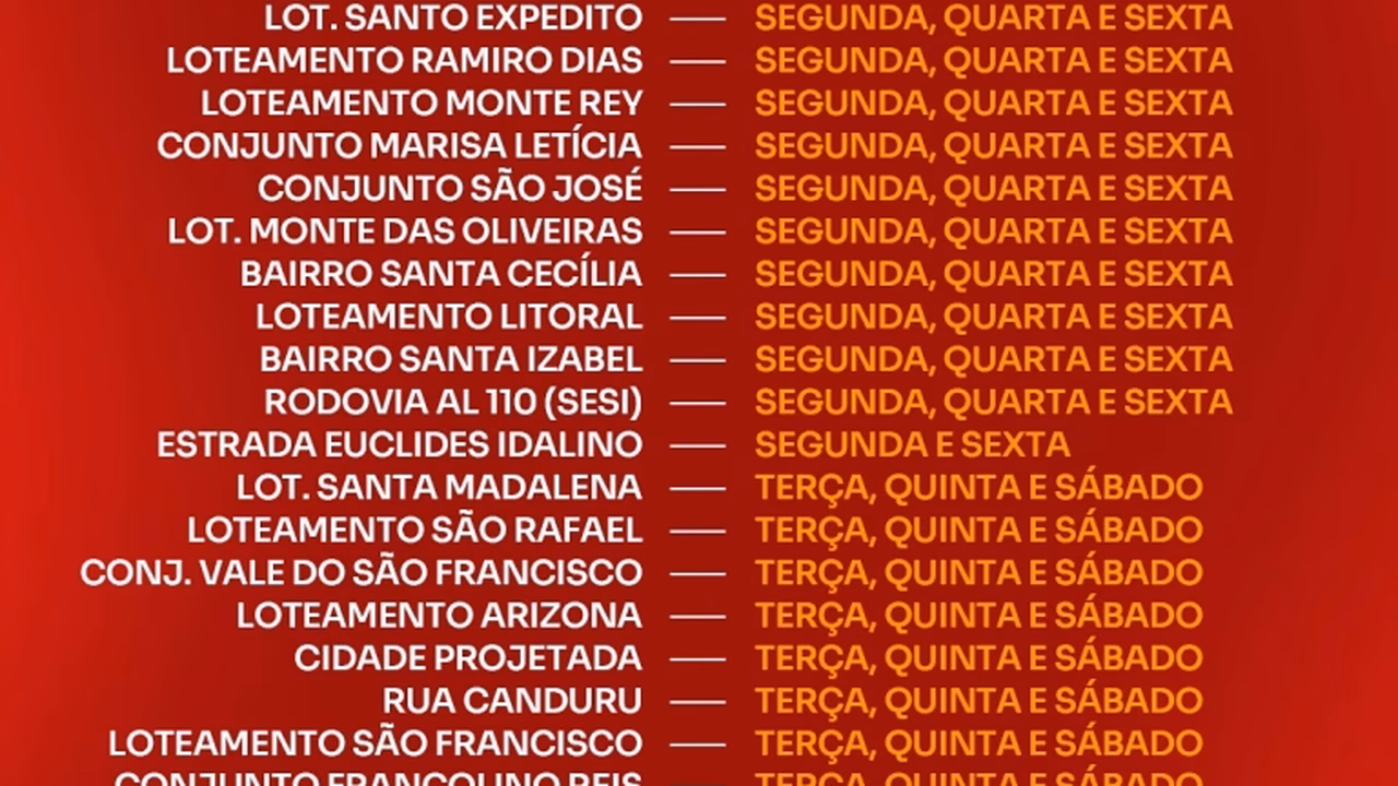 Confira abaixo os novos cronogramas da coleta de lixo em Penedo, divididos entre zona urbana, zona rural e áreas com atendimento diário: