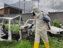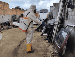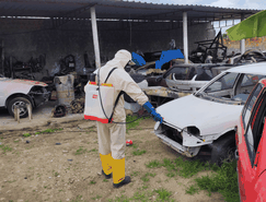A iniciativa consiste na aplicação de inseticida nas áreas externas de locais estratégicos, como borracharias, oficinas mecânicas e ferros-velhos da cidade.