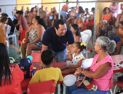 Para desse público inserido pela SEMASDH no Criança Feliz se divertiu e teve acessos a serviços do Assistência Com Você no ginásio da Escola Estadual Professor Ernani Méro na tarde desta terça-feira, 26.