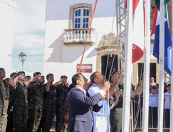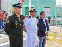 Escolas da Secretaria Municipal de Educação (SEMED) abrilhantaram a cerimônia de hasteamento dos pavilhões na Praça Barão de Penedo, Centro Histórico, com o vice-prefeito Valdinho Monteiro representando o prefeito Ronaldo Lopes.