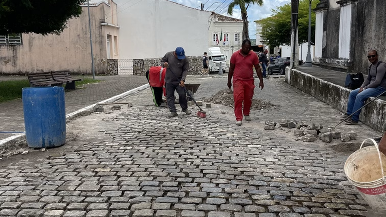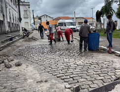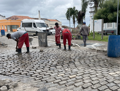 Além da recuperação de vias asfaltadas, a Secretaria de Serviços faz a manutenção de ruas calçadas com paralelepípedos, com diversas intervenções no Centro Histórico e em bairros da parte alta da cidade.