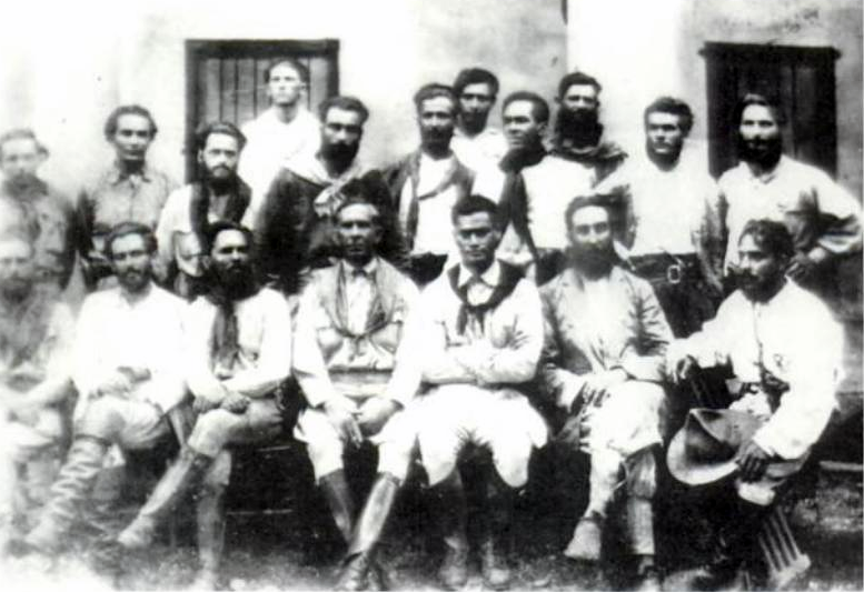 Comando da Coluna Prestes, em foto de 1924. Luís Carlos Prestes é o terceiro sentado, da esquerda para a direita.