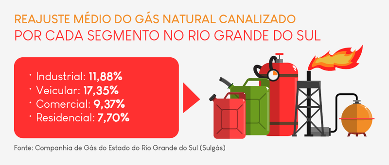 O ano de 2020 foi marcado por sucessivos aumentos no preço do gás. Em 1º de janeiro deste ano, o produto vendido no Rio Grande do Sul de forma canalizada conta com uma nova tabela, que trouxe preços mais amargos. A Companhia de Gás do Estado do Rio Grande do Sul (Sulgás), que comercializa e distribui o produto, reajustou em 7,7% o preço do gás natural domiciliar e o comercial em 9,37%.