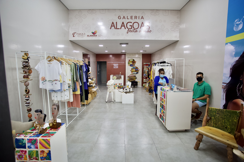 São comercializadas peças em cerâmica, artigos de decoração em fios e tecidos, móveis em madeira e artigos em couro na loja-galeria, que fica no segundo piso do Parque Shopping Maceió. A proposta de exposição da arte popular alagoana faz parte do programa de desenvolvimento econômico regional da Secretaria de Estado do Desenvolvimento Econômico e Turismo (Sedetur) e a galeria Alagoas Feita à Mão conta com a participação de artesãos, mestres, associações, grupos produtivos e profissionais individuais.