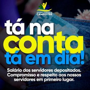 Desde o início de sua gestão, o prefeito Pino tem mantido o compromisso de efetuar sempre em dia o salário dos servidores municipais de Campestre.