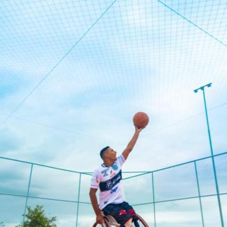 Esse é o Daniel Rodrigues, ou mais conhecido por Daniel Perninha, paratleta de 26 anos de idade do basquete em cadeira de rodas arapiraquense.
