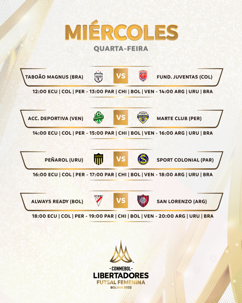 - Nesta terça-feira, na quarta jornada, foram conhecidas as primeiras equipes classificadas para as Semifinais da CONMEBOL Libertadores Futsal Feminina 2022.