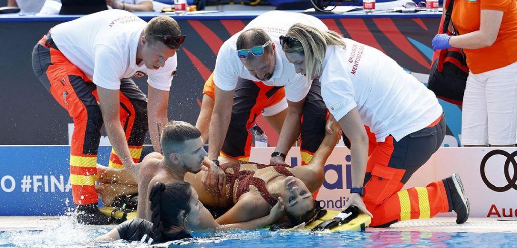 Anita Álvarez desmaiou na última quarta-feira, quando fazia seu solo na disputa do nado artístico em Budapeste. Ela perdeu os sentidos repentinamente e afundou na água, drama respondido com velocidade pela treinadora Andrea Fuentes, que saltou na piscina para resgatar a nadadora. Tudo isso durou cerca de dois minutos. A atleta já possuía histórico de episódios do tipo, como no Mundial de Barcelona, no qual também perdeu a consciência competindo. Em entrevista ao El País, disse que desta vez foi diferente porque não sentiu desgaste físico antes de apagar.