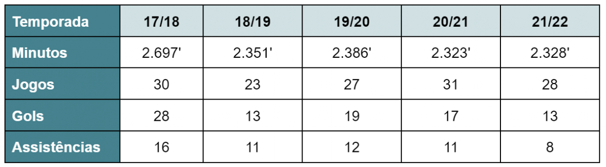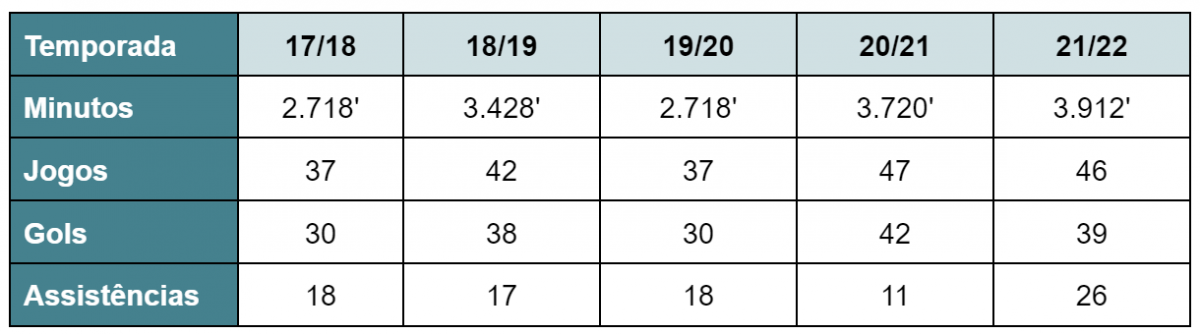 Confira a seguir o desempenho de Neymar nos últimos cinco anos: