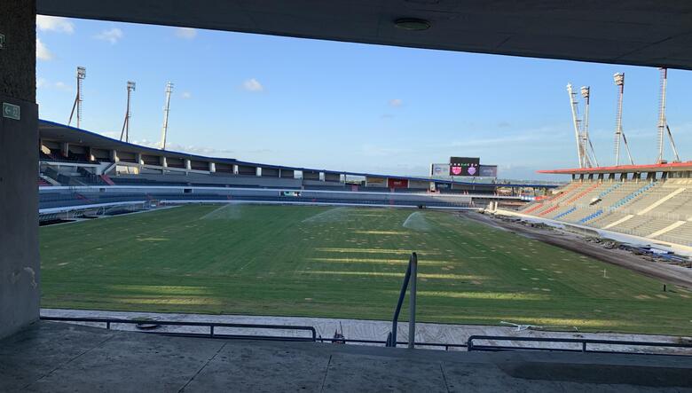 Recuperação do gramado do Estádio Rei Pelé entra na reta final