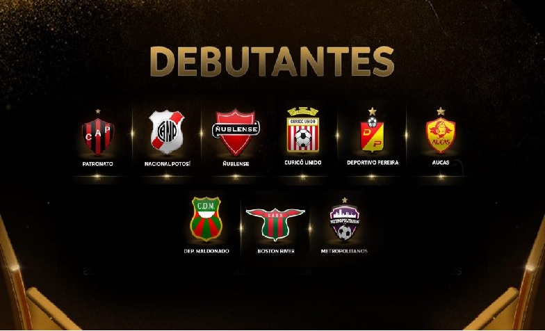 Deportivo Maldonado, Boston River, Metropolitanos, Patronato, Ñublense, Curicó Unido, Nacional Potosí, Aucas e Deportivo Pereira serão os estreantes que buscarão a Glória Eterna.