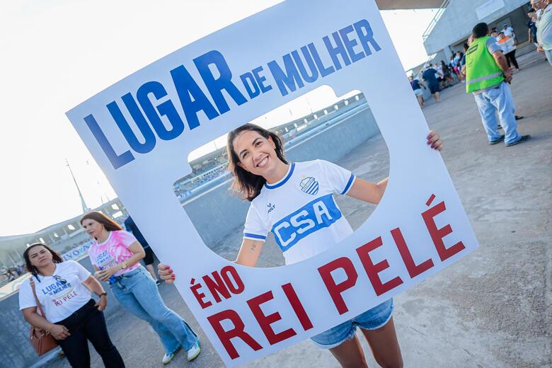 A campanha “Lugar de Mulher é no Rei Pelé” começou com o pé direito. Justamente no dia do maior produto do futebol alagoano, o “Clássico das Multidões” entre CSA e CRB, válido pela Copa do Nordeste, a ação do Governo de Alagoas, desenvolvida pela Secretaria do Esporte, Lazer e Juventude (Selaj), interagiu e aproximou a torcida feminina da maior praça esportiva de Alagoas.