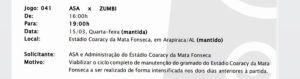 ASA x Zumbi, mudança de horário na copa Alagoas