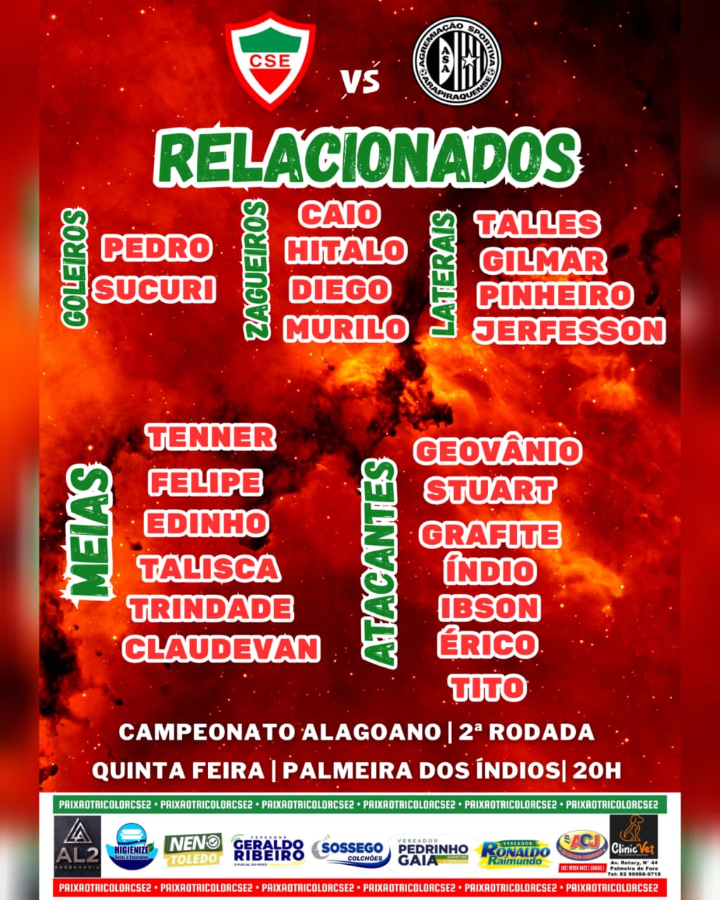 Está fora desse jogo o meia Luiz Fernando, machucado e que saiu ainda no primeiro tempo no último jogo diante do Murici. Já o atacante índio teve o nome publicado no BID da CBF e estará à disposição do treinador para esse clássico do interior do Estado.
