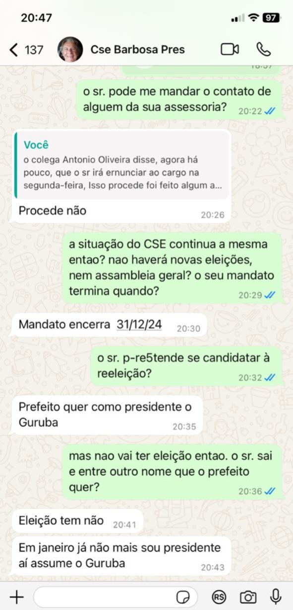 Apesar de uma aparente calmaria após embates públicos e tensões nos bastidores, o desfecho repentino da disputa pela liderança do CSE deixa no ar dúvidas ainda não respondidas. O ponto central, que segue sem solução, é a prestação de contas do clube. Segundo informações, a transparência das finanças do CSE continua sendo um tema espinhoso. Dias atrás, Barbosa revelou que o diretor do clube, José Alves, primo do prefeito, leva pessoalmente a prestação de contas ao governo municipal. No entanto, o acesso à documentação pública do clube permanece um mistério, suscitando questionamentos sobre a transparência na gestão de um clube que depende amplamente de recursos públicos.
