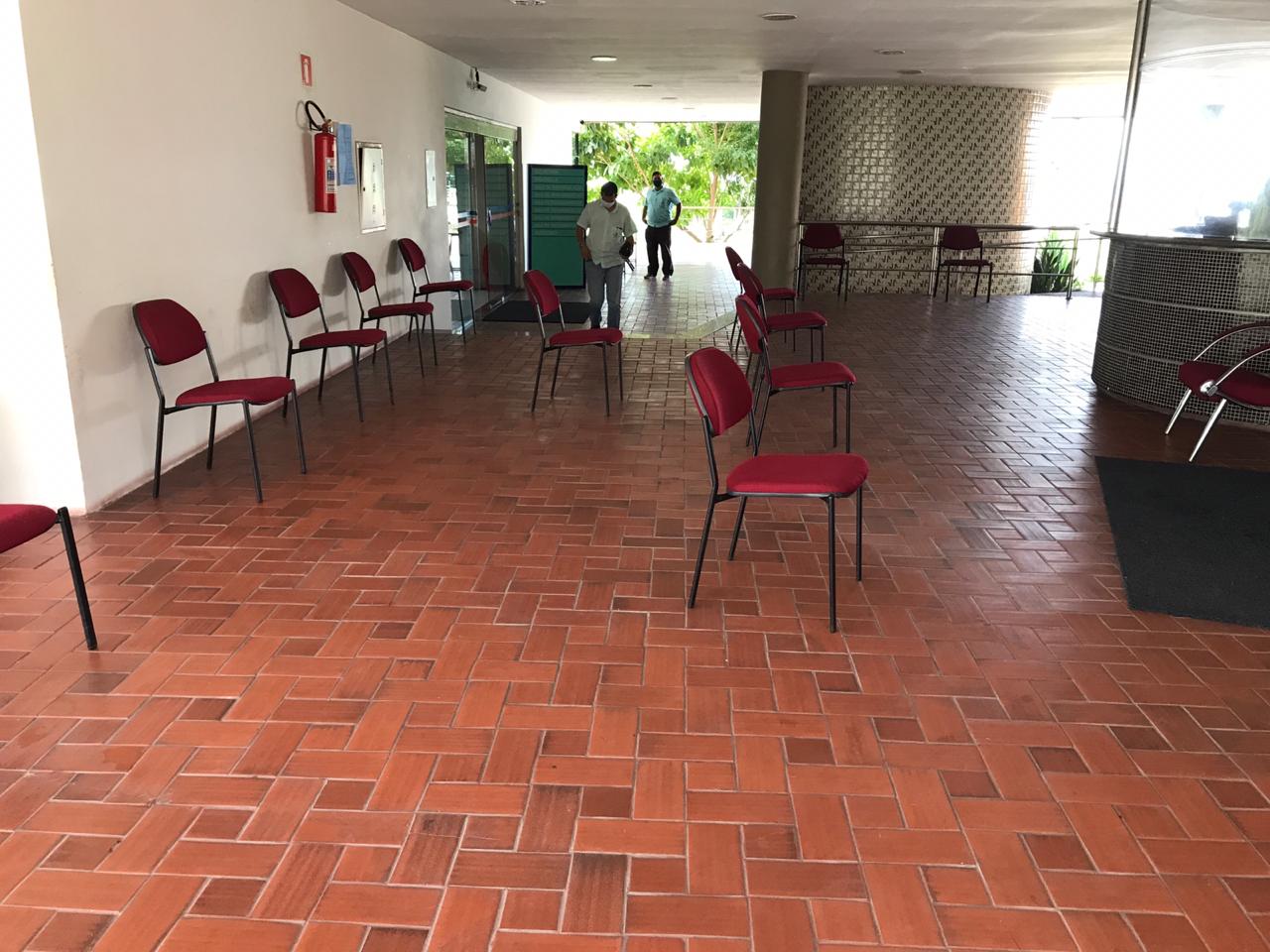No Bloco Administrativo Sílvio Carlos Viana, em Jacarecica, a inspeção observou todos os setores de trabalho, verificando a quantidade de servidores que prestam serviço na mesma sala, sistema de circulação de ar, distanciamento entre as bancadas de trabalho, dispensas de álcool gel, bem como as condições em dia de atendimento ao público, observando a limitação dentro de cada instalação de atendimento.
