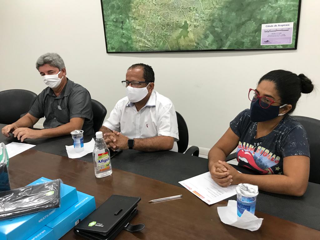 A videoconferência aconteceu na tarde desta quinta-feira (25). Na sala de reuniões do Centro Administrativo Municipal, com a presença do secretário Municipal de Saúde e dos representantes do sindicatos Sindsar, Sindprev e Sindagreste, Joseane Lima, José Lino e Jade de Albuquerque, respectivamente, conversaram com o prefeito Rogério Teófilo, os promotores Rogério Paranhos e Lucas Mascarenhas, e o procurador Rafael Gomes.