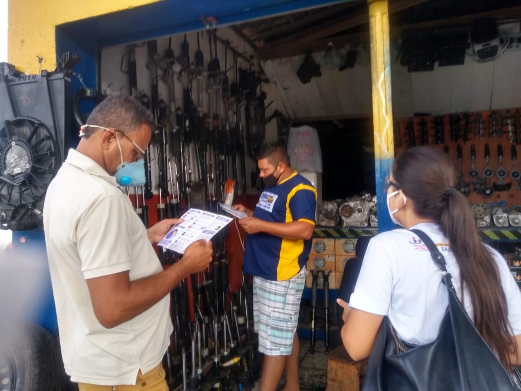 Diariamente, equipes de Promoção da Saúde visitam estabelecimentos, fiscalizam e orientam comerciantes sobre formas de prevenção ao contágio do coronavírus, a exemplo de distanciamento social, higienização e uso de máscaras.