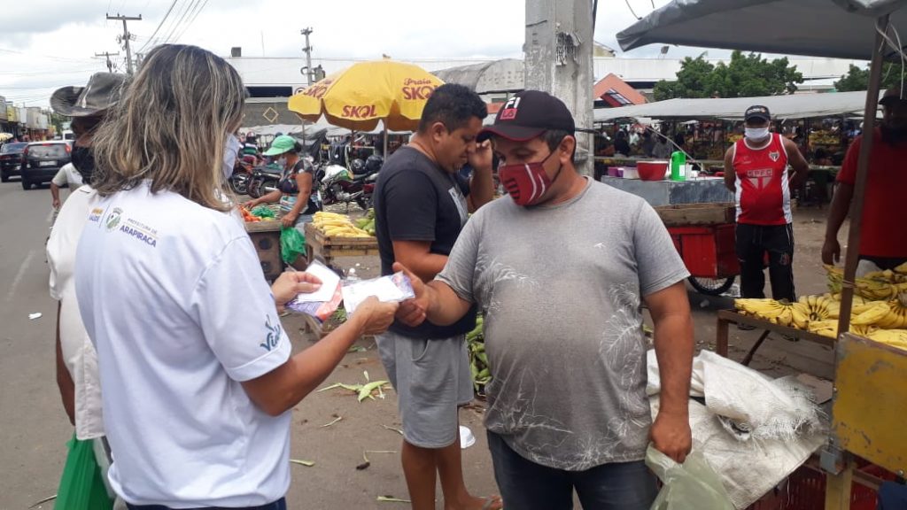 Há quatro meses, desde o início da pandemia, a Prefeitura de Arapiraca vem executando estratégias de enfrentamento ao coronavírus no Município. Entre elas, ações educativas diárias e a distribuição de máscaras, em estabelecimentos comerciais e feiras livres da cidade.