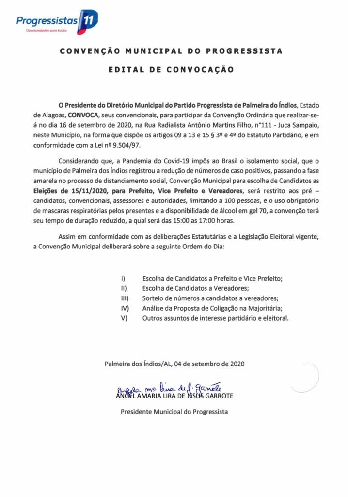 Palmeira: Progressitas realizam convenção dia 16