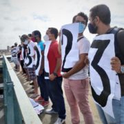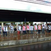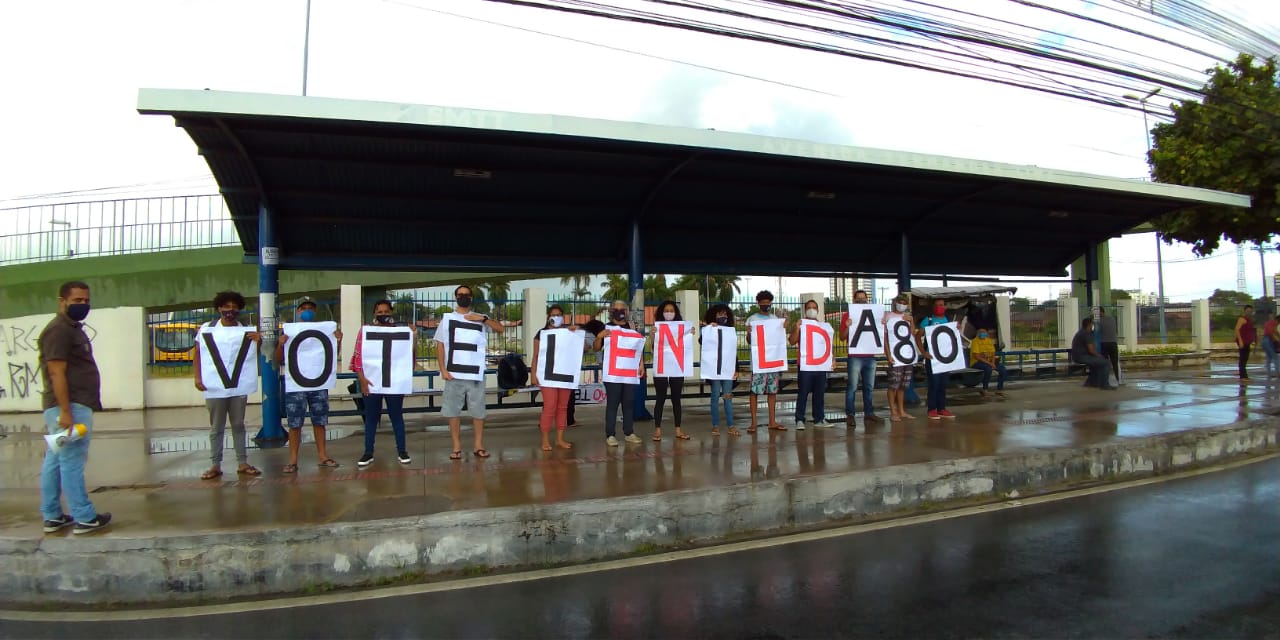 Junto de filiados/as à Unidade Popular, as candidatas abriram letras grandes com o dizer “Vote Lenilda 80 – Não temos tempo de TV”. O candidato a vereador Magno Francisco também participou da atividade, segurando cartolinas com o dizer: “Vote Magno 80123”.