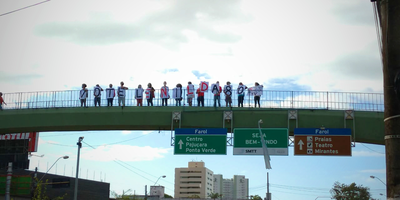 A intervenção urbana aconteceu no horário de grande fluxo da principal avenida de Maceió, por volta das 7h às 8 horas.