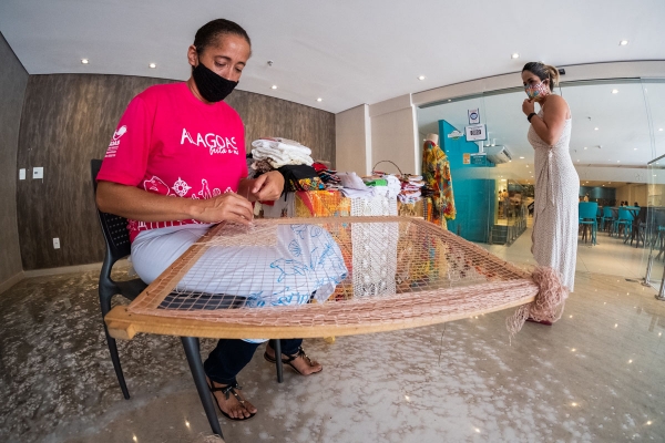 Com a proximidade da alta temporada, artesãos alagoanos da Associação do Pontal da Barra ganham um espaço no hall de cinco hóteis da capital Maceió para expor e comercializar seus produtos, que têm como base o bordado filé, considerado Patrimônio Cultural Imaterial do estado. A ação é apoiada pelo programa Alagoas Feita à Mão, conduzido pela Secretaria de Estado do Desenvolvimento Econômico e Turismo (Sedetur).