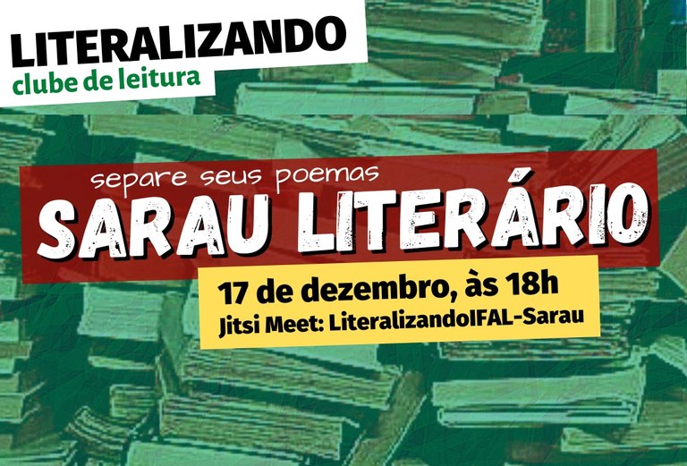“Para participar do Sarau Literário basta acessar a sala ‘LiteralizandoIFAL-Sarau’ do aplicativo Jitsi Meet. Quem escreve poesias, leve-as para compartilhar. Ou traga aquelas poesias que você gosta e queira compartilhar. A atividade é aberta e esperamos encerrar um ano difícil com um pouco de poesia”, convida o professor Lucas Menezes, que é um dos organizadores do grupo.