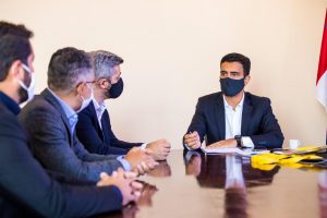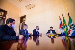 A reunião aconteceu com Rafael Alessi, superintendente estadual do Banco do Brasil; Ricardo Luiz Ribeiro, gerente geral do Setor Público e Rodrigo Martins Moura, gerente geral da Agência Estilo.
