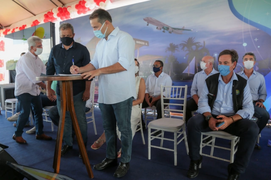 A solenidade de assinatura da ordem de serviço foi realizada na área onde será erguido o aeroporto. Participaram da cerimônia: o ministro do Turismo, Gilson Neto; o senador Renan Calheiros; o presidente da Embratur, Carlos Brito; e o prefeito de Maragogi, Sérgio Lira, além de secretários estaduais, parlamentares, prefeitos de municípios da região Norte de Alagoas e do Sul de Pernambuco, representantes do trade e operadores do turismo alagoano, dentre outras autoridades.