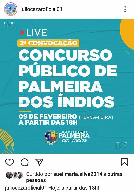 Pelas redes sociais o prefeito Julio Cezar anunciou uma live para esta terça-feira, 9, onde irá fazer uma “segunda convocação” dos concursados.