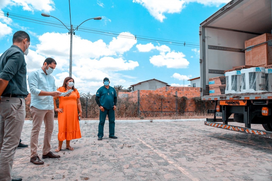 Ao lado da prefeita de Delmiro Gouveia, Ziane Costa, Alexandre Ayres acompanhou a entrega de equipamentos para os novos leitos Covid